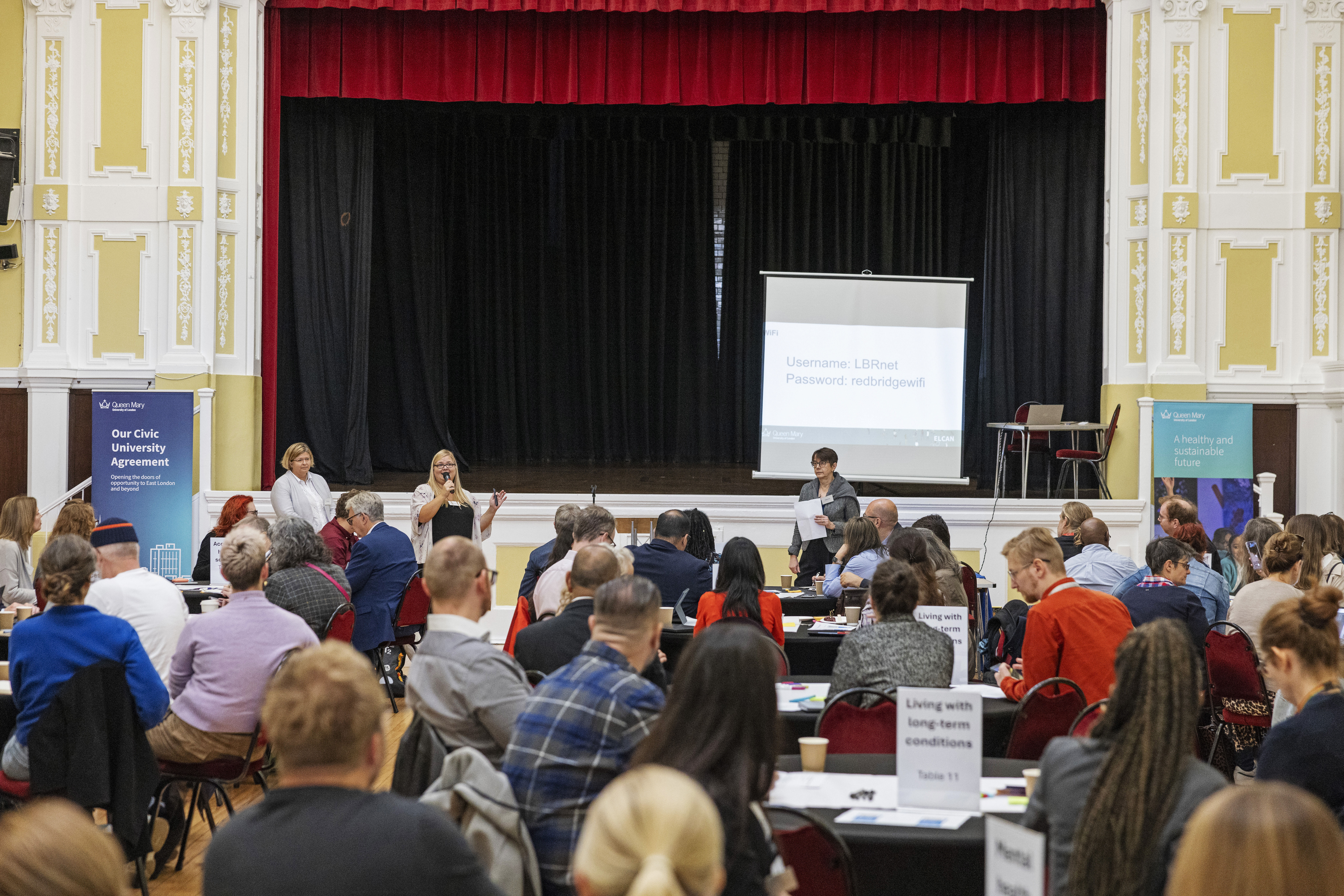 On September 11th, Redbridge Town Hall hosted the launch of the Queen Mary East London Civic Action Network, drawing over 100 participants from faith communities, voluntary and community organisations, local authorities, NHS teams, elected leaders and Queen Mary University of London staff and researchers. The first network event focused on how we build health equity across East London by fostering connections, deepening understanding, and enhancing collaboration together as health stakeholders and systems. This aligns to one of the five priority themes of Queen Mary’s Civic University Agreement, ‘A Healthy and Sustainable Future’.