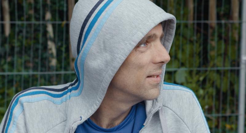 A still from ISLAND shows Jamie, one of the film's subjects, talking to friends