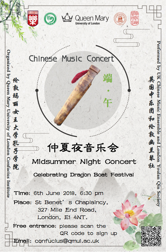 The QMUL Confucius Institute will be celebrating the Dragon Boat Festival with a Midsummer Night Chinese Music Concert with guest musicians from the UK Chinese Music Ensemble and London Youlan Qin Society.