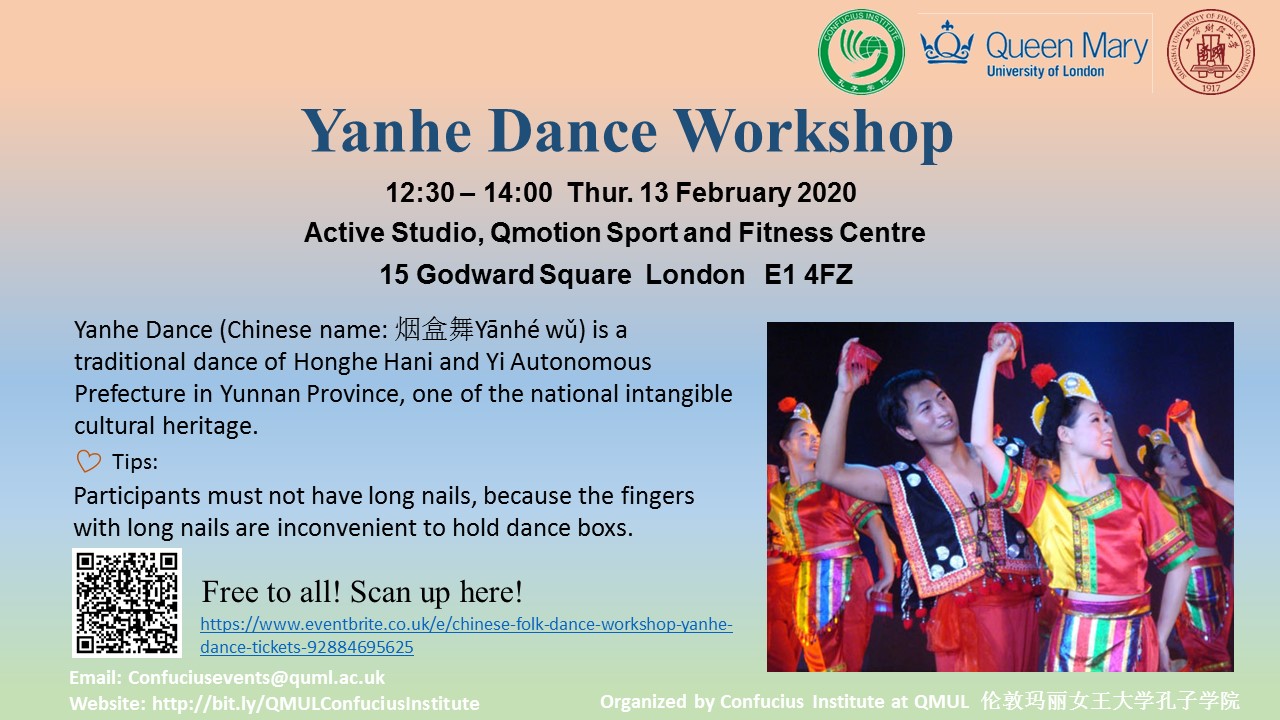 https://www.eventbrite.co.uk/e/chinese-folk-dance-workshop-yanhe-dance-tickets-92884695625 or email confuciusevents@qmul.ac.uk if you have any problems.