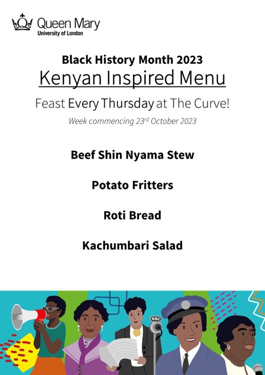 QM Food are celebrating BHM with a range of menus inspired by countries from across the world, this will be every Thursday at the Curve Restaurant, 11.00am-3.00pm.