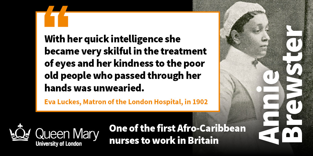 In 1881 Annie Brewster entered the London Hospital as a trainee nurse and was appointed to the hospital's nursing staff in 1884. She was promoted to nurse in charge of the Ophthalmic Wards in 1888. Brewster became known as 'Nurse Ophthalmic' because of her work with elderly patients who were losing their sight.