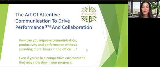 On 21st March Annelise Pesa (Banking and Finance Law LLM, 1998) CCLS Alumna and renowned leadership coach delivered a masterclass to our alumni community exploring the topic: The Art of Attentive Communication To Drive Performance ™ And Collaboration