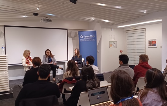 The evening featured an engaging interview-style discussion with our guest speakers Mrs Larisa Babiy (Head of Strategic Litigation and Arbitration, Renault Group), and Mrs Samia Gambier (International Legal Negotiator, Total Enterprises), both experienced in-house lawyers at major international firms. The conversation, expertly facilitated by Dr Maria Fanou, explored the realities of working within an organisation, offering candid reflections on the evolving role of in-house counsel, the strategic dimension of their advisory function, and the professional pathways that shape a successful career in this field.
