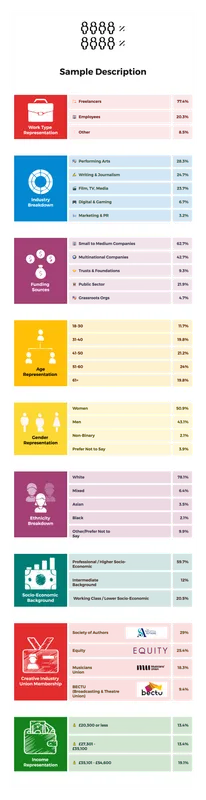 This page provides a comprehensive snapshot of the creative professionals who participated in our study. It explores their employment status, industries, funding sources, demographic backgrounds, and economic realities. By understanding who these workers are—where they work, how they earn, and the challenges they face—we can better contextualise the broader impact of Generative AI on creative industries.