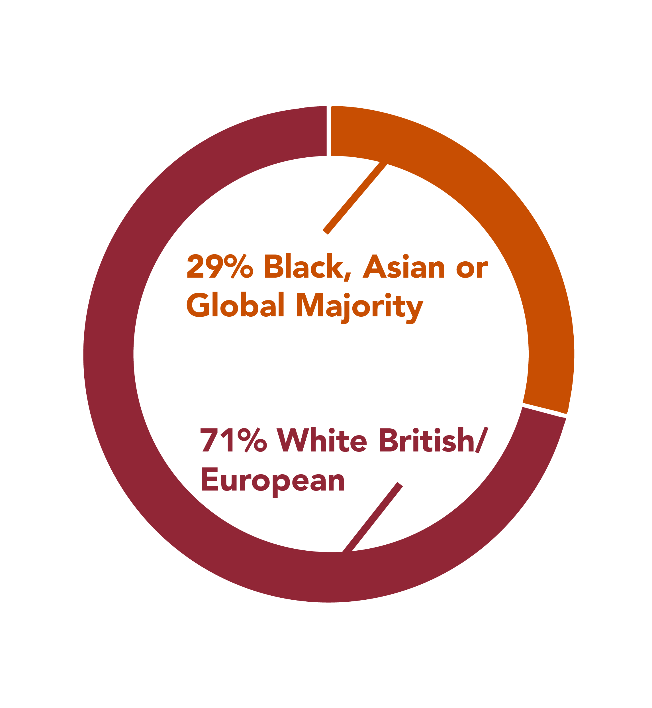- 29% reported their ethnicity as being from Black, Asian or Global Majority backgrounds, and 71% from White British/European ethnic backgrounds.