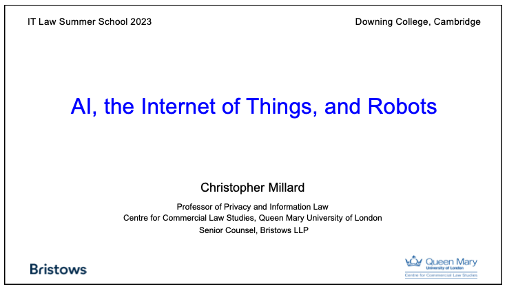 Christopher Millard co-chaired IT Law Summer School 2021 at Downing College, Cambridge and gave lectures on ‘Cloud Computing’, ‘GDPR’s Territorial Scope and the Roles of Controllers and Processors’, and ‘Regulating AI, the Internet of Things, and Robots’