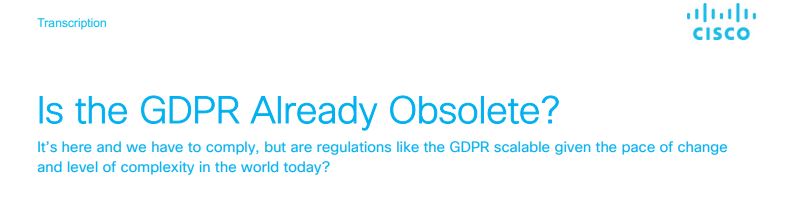 You can listen to the podcast on iTunes (https://podcasts.apple.com/us/podcast/privacy-sigma-riders/id1282071235), or read the full transcript here: https://www.cisco.com/c/dam/en_us/about/doing_business/trust-center/docs/cisco-privacy-podcast-gdpr-obsolete-39.pdf .