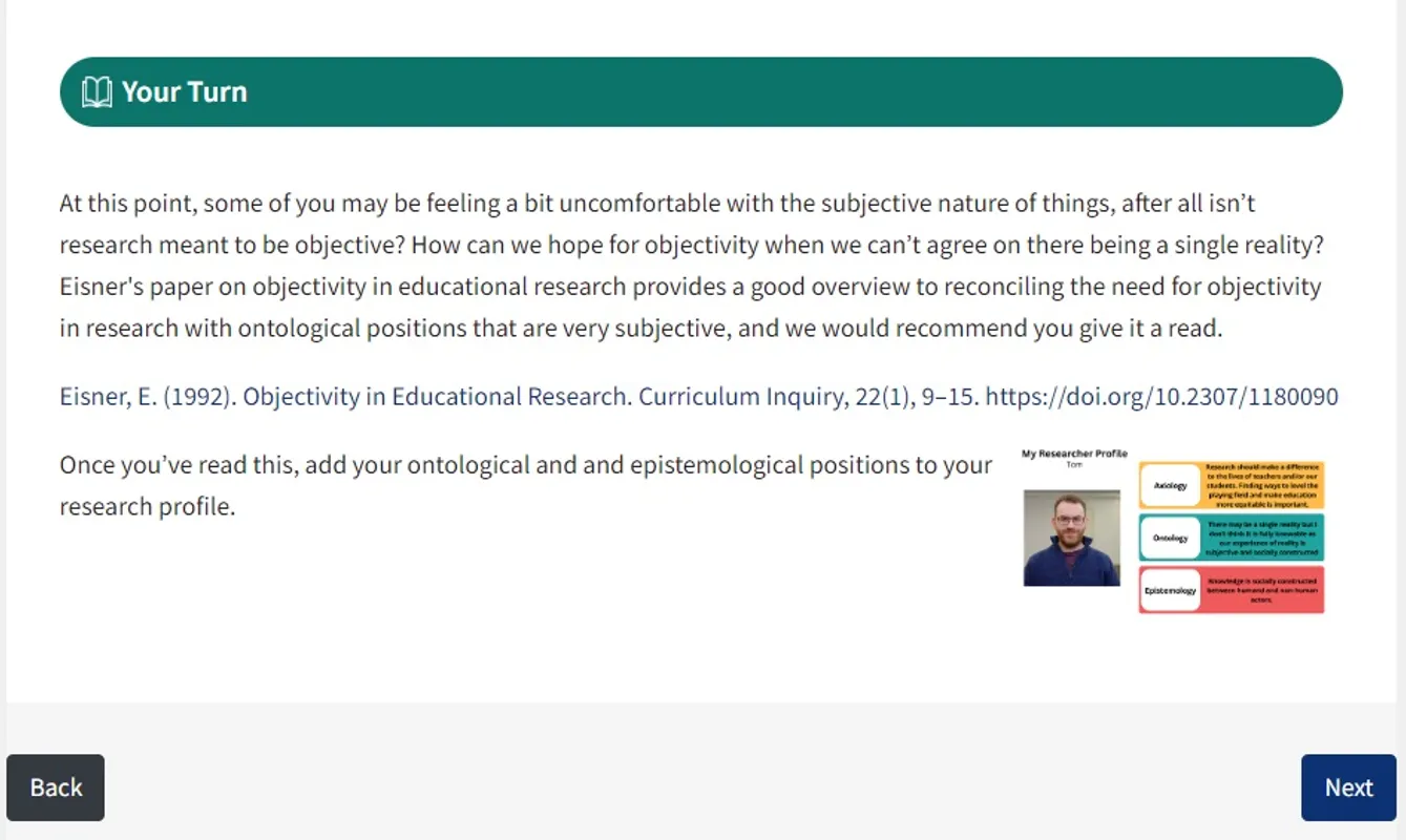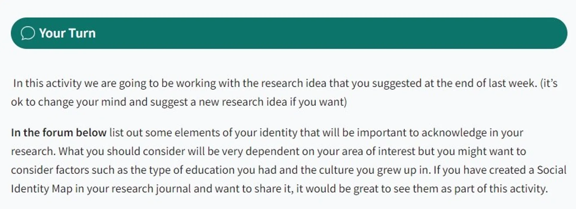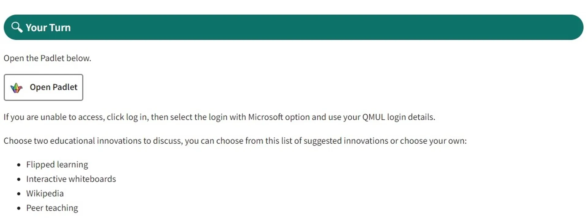 Within each section of content it’s helpful to flag where you are inviting the learner to engage in a learning activity in response to content presented so far. Using the new Your Turn headings adds visual consistency to these requests and makes it easier for students to quickly find these again later.