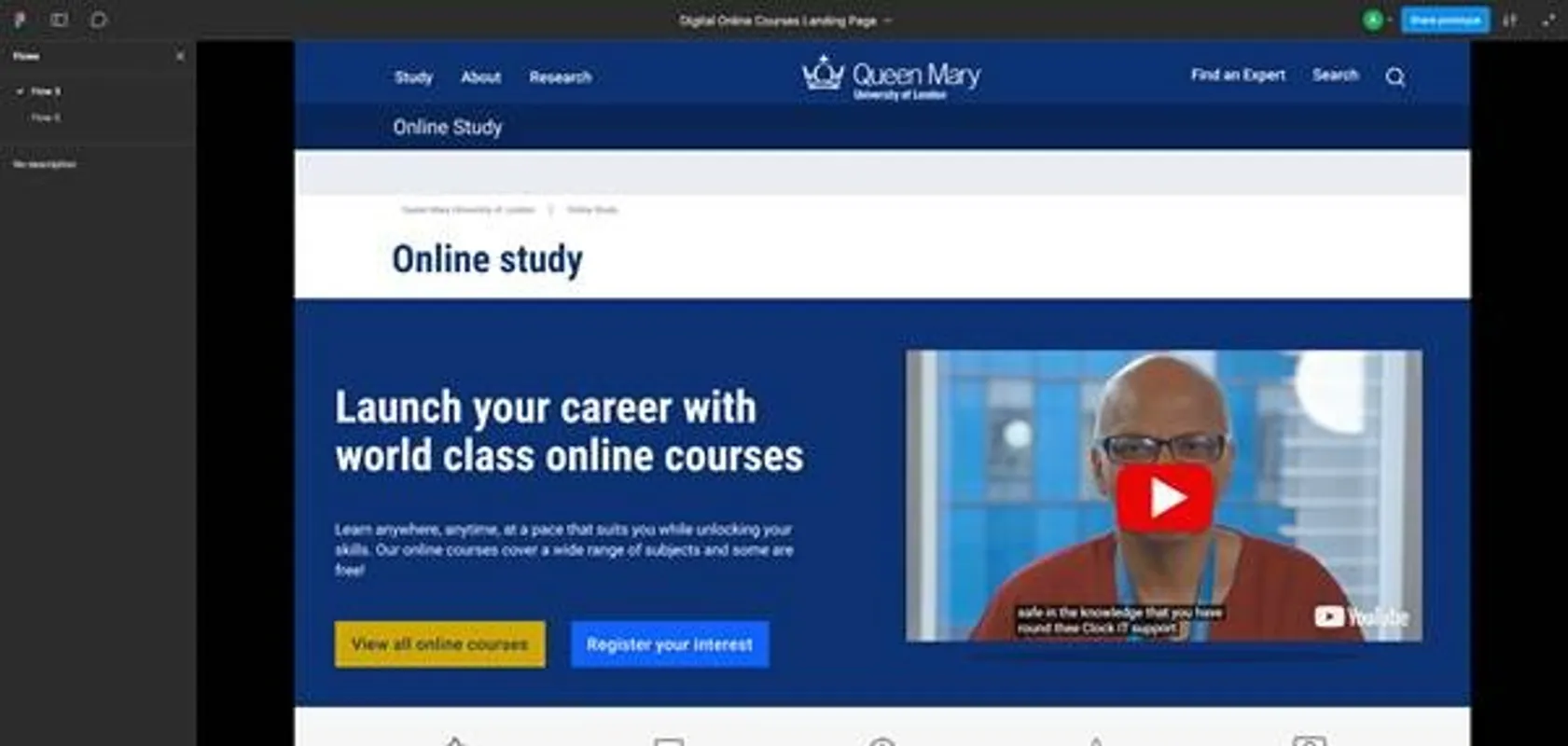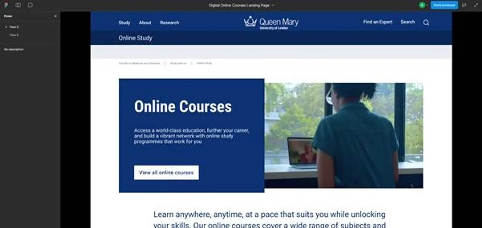 Usability testing and quality assurance supported final improvements, ensuring accessibility across devices and clarity for diverse audiences. The result is a Course Finder that reflects FMD’s commitment to inclusive, high-quality education, making it easier for learners to see themselves at Queen Mary and take the next step. As the redesigned Online Course Finder has only recently launched, quantitative impact is still being gathered, but early feedback indicates improved clarity, navigation and visibility of FMD’s online offer, making it easier for learners to discover and compare courses. The project has also strengthened cross-team working and established shared UX standards now being reused across other initiatives. Next steps will focus on analytics review and UX audits to inform iterative improvements, with the Course Finder providing a scalable foundation for future programme growth and enhanced discovery features.