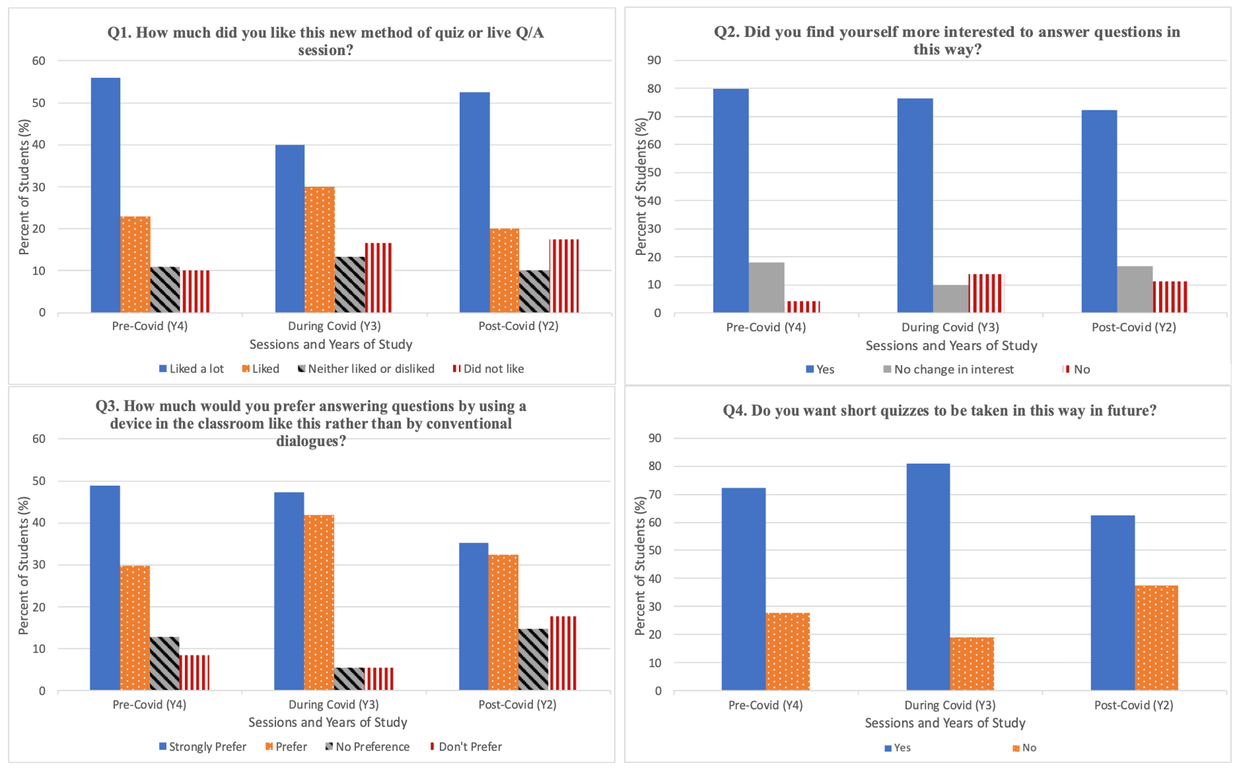 Almost 79% of the year-4 students (pre-covid) liked the live interactive session. The percentages are 73% for year-3 students (online delivery) and 63% for year-2 students.