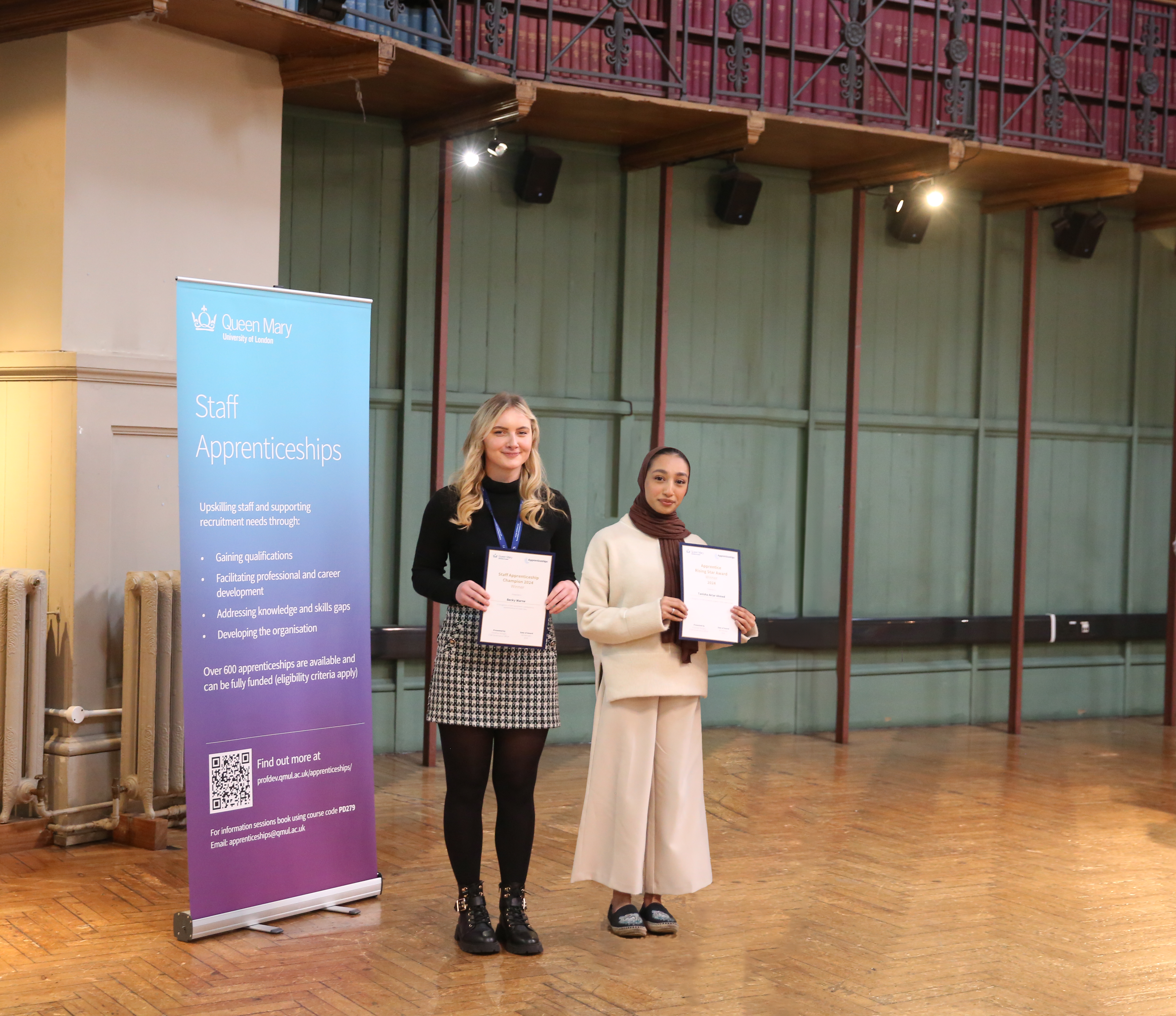 National Apprenticeship Week 2024 took place in February. Queen Mary marked the week with the Staff Apprenticeships Awards, offering a chance to reflect on the positive impact of apprenticeships, and the effort that goes into staff development at Queen Mary. Tanisha Aktar Ahmed and Becky Warne, two staff members in the School of Electronic Engineering and Computer Science (EECS), were both honoured at the awards ceremony.