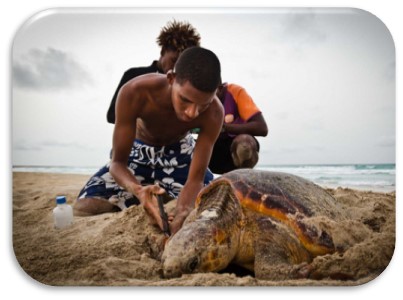 The Wild-live Streaming team rounded off 2023 with a visit to Oaklands School in Bethnal Green, a stone’s throw away from QMUL’s Mile End campus. We were delighted to introduce the work of Turtle Foundation, a conservation NGO working in Indonesia and on the island of Boa Vista in Cabo Verde. In Cabo Verde, Turtle Foundation carries out a range of conservation activities focusing on sea turtles and their habitats, from patrolling beaches and protecting sea turtles to environmental education and outreach. We were joined by Airton Jesus (originally from the island of Santo Antao, Cabo Verdean), a field coordinator from Turtle Foundation, who has over ten years’ experience working in sea turtle conservation in Cabo Verde. Airton was among the first Cabo Verdean’s to have engaged with sea turtle conservation in the country and has been a Student Ambassador with QMUL since 2012!
