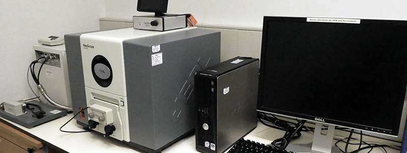This suite contains several types of microscopes including a scanning electron microscope. This SEM is a type of electron microscope that produces images of a sample by scanning the surface with a focused beam of electrons. The electrons interact with atoms in the sample, producing various signals that contain information about the sample's surface topography and composition.