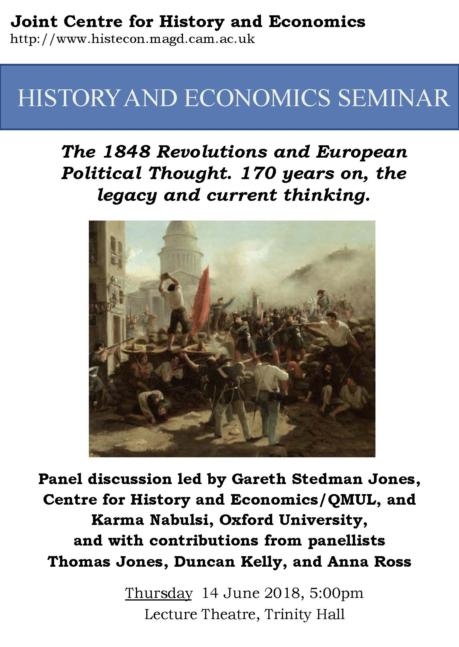 Professor Gareth Stedman Jones led a panel on History and Economics Seminar on Thursday 14th June at the Lecture Theatre in Trinity Hall, Cambridge. Gareth was joined by Karma Nabulsi, Oxford University, and contributions came from panellists Thomas Jones, University of Buckingham, Duncan Kelly, University of Cambridge, and Anna Ross, University of Warwick.
