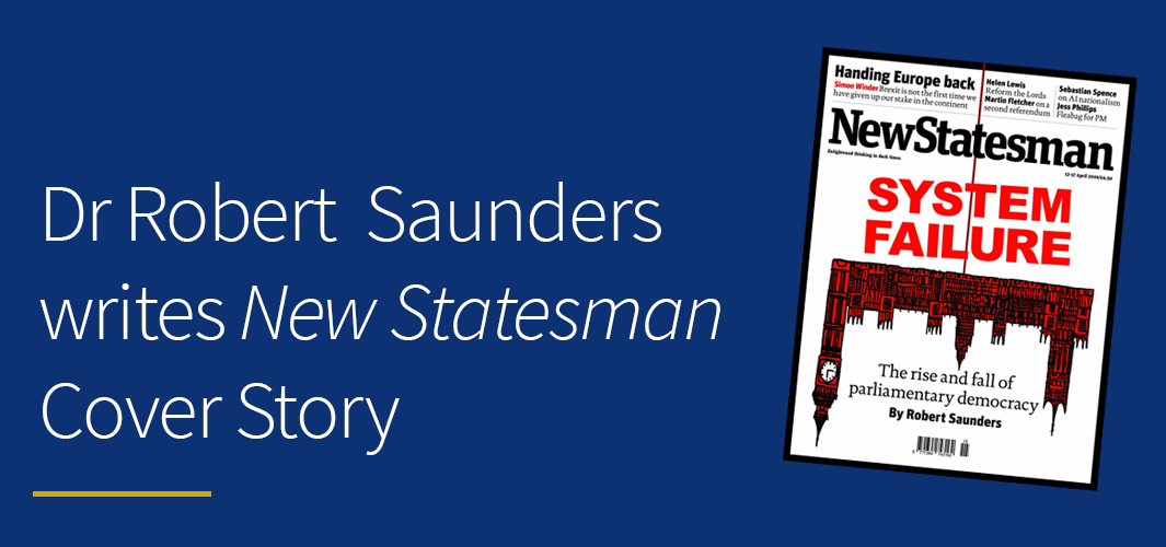 Senior Lecturer in Modern British History Dr Robert Saunders features on the cover of this week's New Statesman magazine. Robert's article 'The rise and fall of British democracy' can be read in full on the New Statesman website.