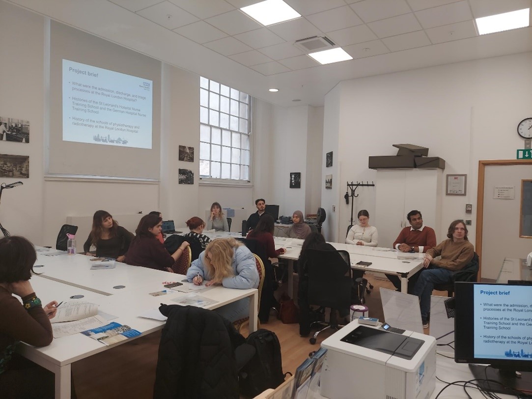 Following a competitive application process, three qHeritage teams were put together with students from the School of History and the School Business and Management. They received introductory training on the heritage sector, client management and an onboarding to Barts Health Archives. The teams collaborated closely to apply the skills and attributes they had developed in their degree programmes, combining knowledge of the politics and priorities of ‘heritage’ with skills around research, analysis and communication.
