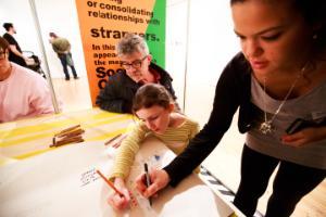 During another workshop, Torange Khonsari, founder of Public Works invited people to take a seat in their public living room installation, for a chat about hospitality and welcoming visitors in their home. People’s stories were written or drawn down on a long scroll of paper, slowly creating a wall paper filled with stories and memories. Several visitors recognised the importance of being hosted at their family and friends, to how they feel at home in their neighbourhood. As one visitor reflected, the event “reminded me how lucky I am to live in such a great area, near my family”.