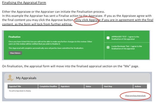 Under My Appraisals click on ‘View previous Appraisals’ | view image here.