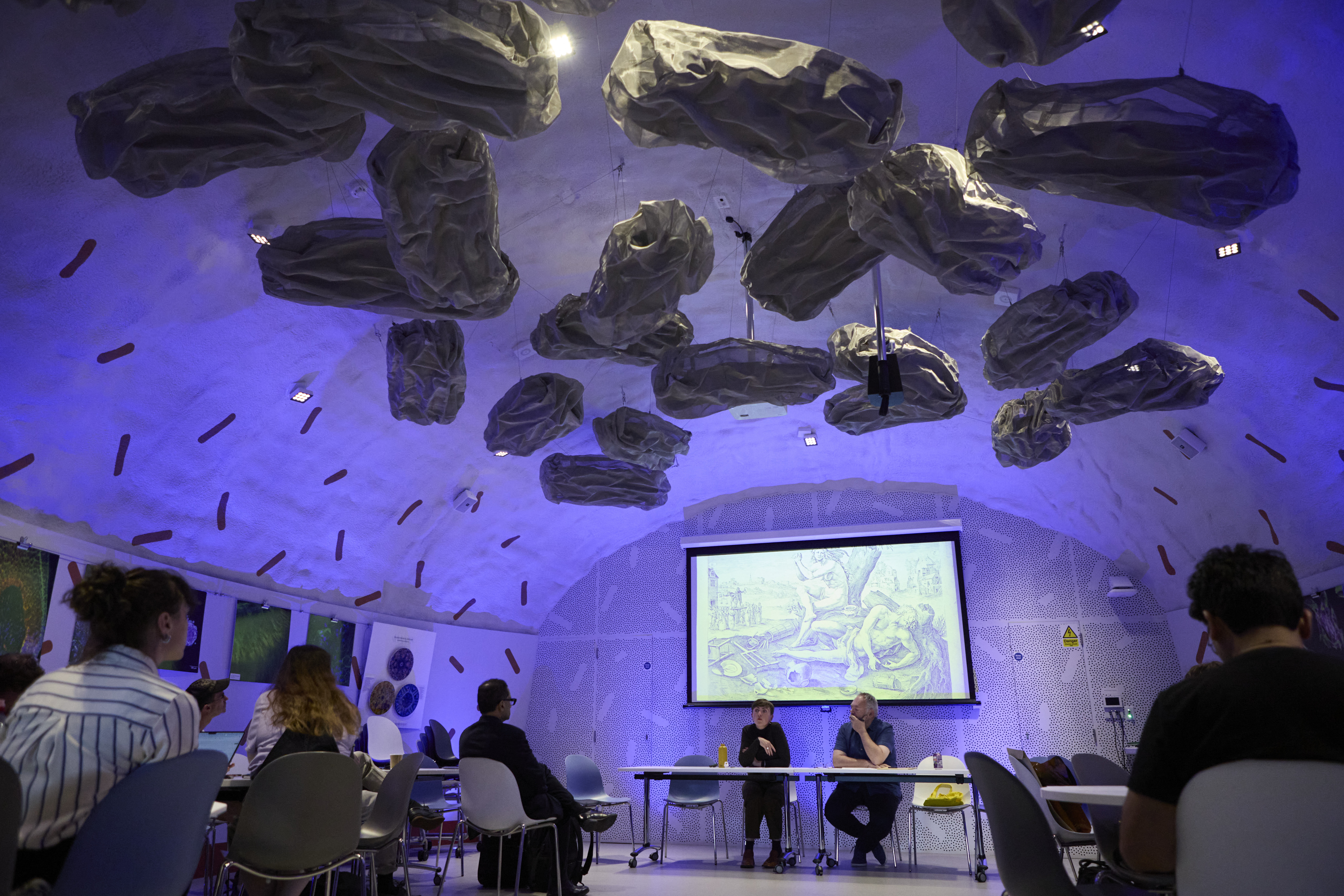 Visual artist Jennie Pedley facilitated a participatory drawing workshop based at her Art of the Gut residency at the Quadram Institute. Attendees drew, doodled and collaboratively constructed visual narratives tracing the journey of food through the digestive tract. Participants visually mapped dietary pathways and microbial communities in a tactile process aimed to stimulate thought about the gut as an emotional organ (Images 3, 4 and 5).