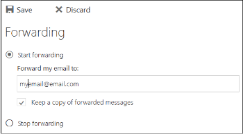 4. Click Start forwarding and type the email address you would like to forward your emails to and then click Save.