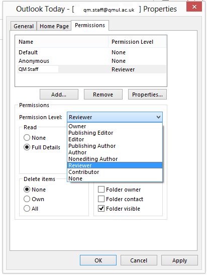 Delegate mailbox permissions via Outlook