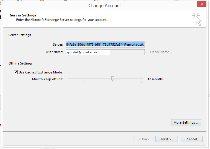 3. When the Change Account window appears click on More Settings....