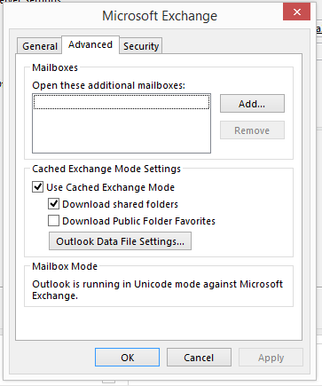 4. On the Microsoft Exchange window click on the Advanced tab and click Add.