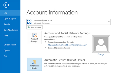 2. Click on the ‘Automatic Replies (Out of Office)’ button.