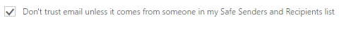 6. To have email that doesn't come from the Safe senders list go directly to the Junk folder, check the box next to the option: Don't trust email unless it comes from someone in my Safe Senders and Recipients list