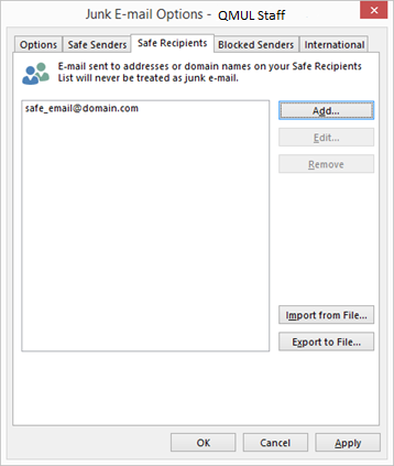 - You cannot add an email address as both blocked senders and safe senders