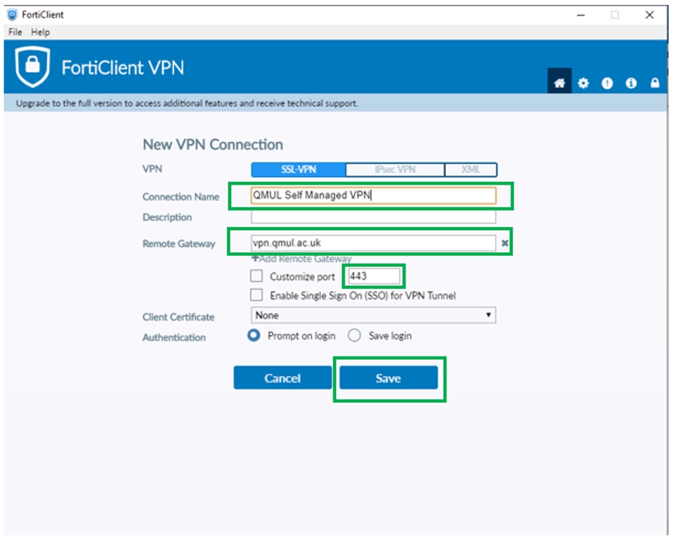 Remote Gateway: You “MUST” enter the remote gateway as shown in the screenshot below vpn.qmul.ac.uk