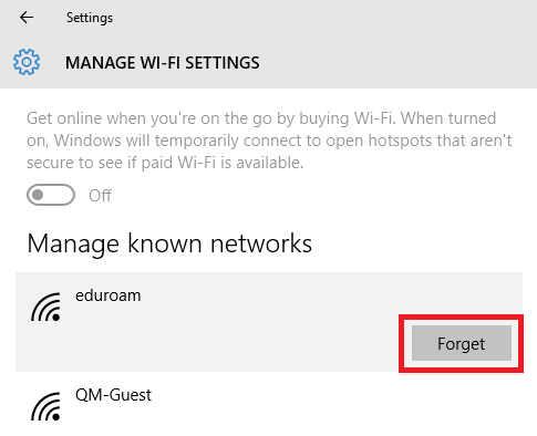 5. Click eduroam then click Forget