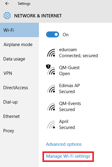 3. Click on Manage Wi-Fi Settings