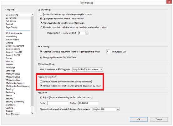 Remove Acrobat Hidden Information Message