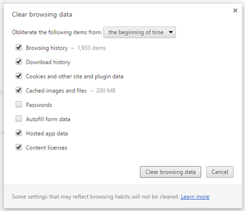 2. Clicking on the drop-down menu next to Time range to clear: choose Everything