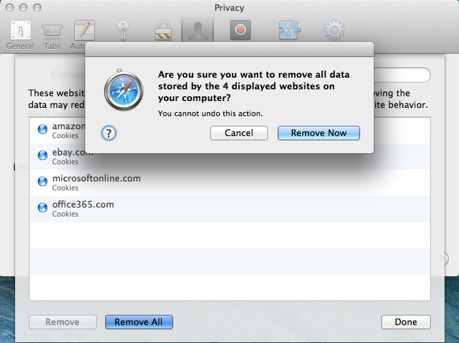 NOTE: You can select individual websites if you do not want to remove all stored data.