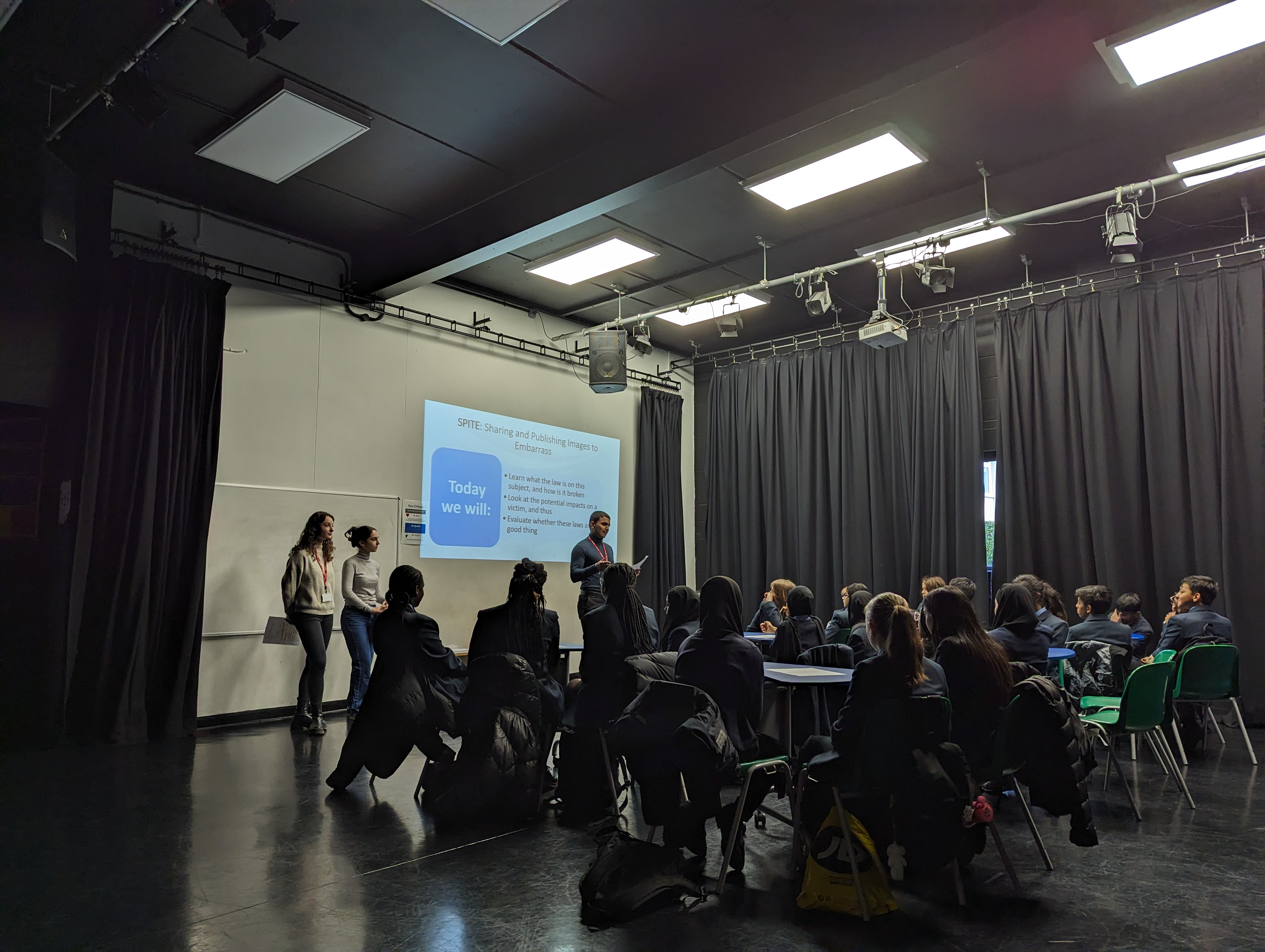 The Queen Mary Legal Advice Centre students deliver free bespoke workshops to groups of young people in local secondary schools. These workshops aim to educate young people on the law and issues surrounding the sharing of intimate images. Each workshop is specifically designed for the needs of the school or organisation, and we can tailor the workshop to adapt for different sized groups of young people (e.g. assemblies, classes, small target groups).