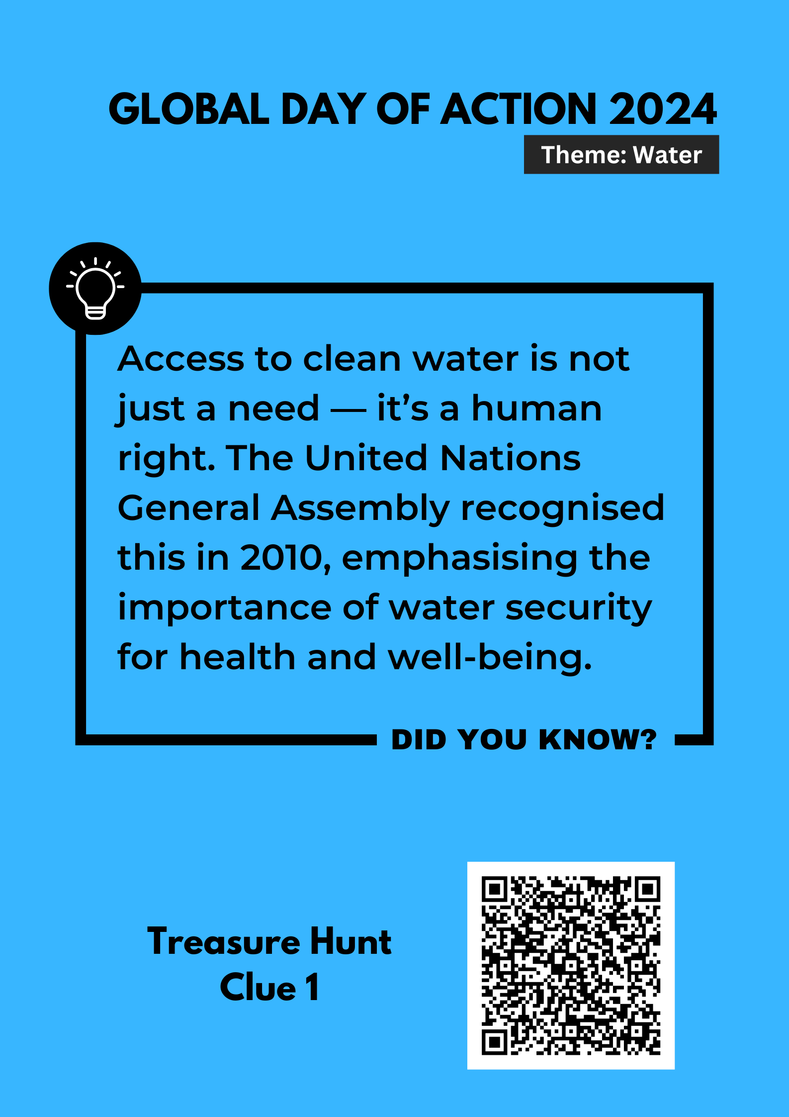 The team also prepared a treasure-hunt, with different law-related water facts posted on posters in different corridors and areas around the building, highlighting water wastage in different countries around the world and the rights to clean water and sanitation. Each fact was accompanied by a QR code, which provided a clue as to where the next fact was located. The aim of this activity was to raise awareness of water rights around the world, and encourage discussion on the topic for anyone who engaged with the posters individually, or with the treasure-hunt as a whole.