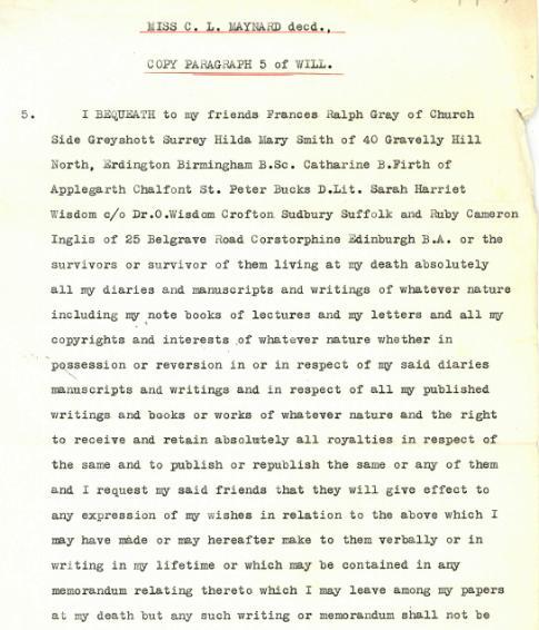 Extract of Maynard's Will naming literary executors [Ref. CLM deposit file]