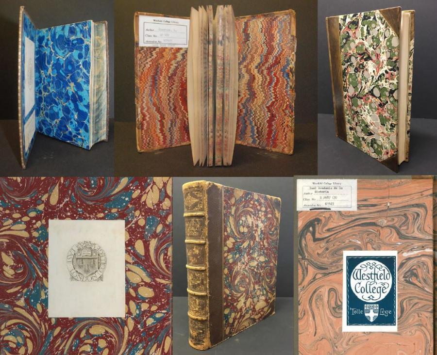 Queen Mary Library's rare books collection contains hundreds of books with marbled endpapers and marbled covers. They are some of our favourite books because of their striking colours and beautiful designs.