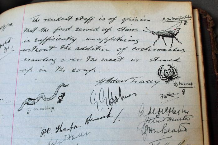 A steady array of gripes, grievances and protests can be mused over in the books. Tough or rancid beef “unfit for human consumption” crops up regularly, as does the presence of beetles in food and drink, “insipid and tasteless” morning coffee, paucity of fresh fruit and vegetables, allegations of food poisoning, high prices and - the ultimate catastrophe - running out Bourneville chocolate!