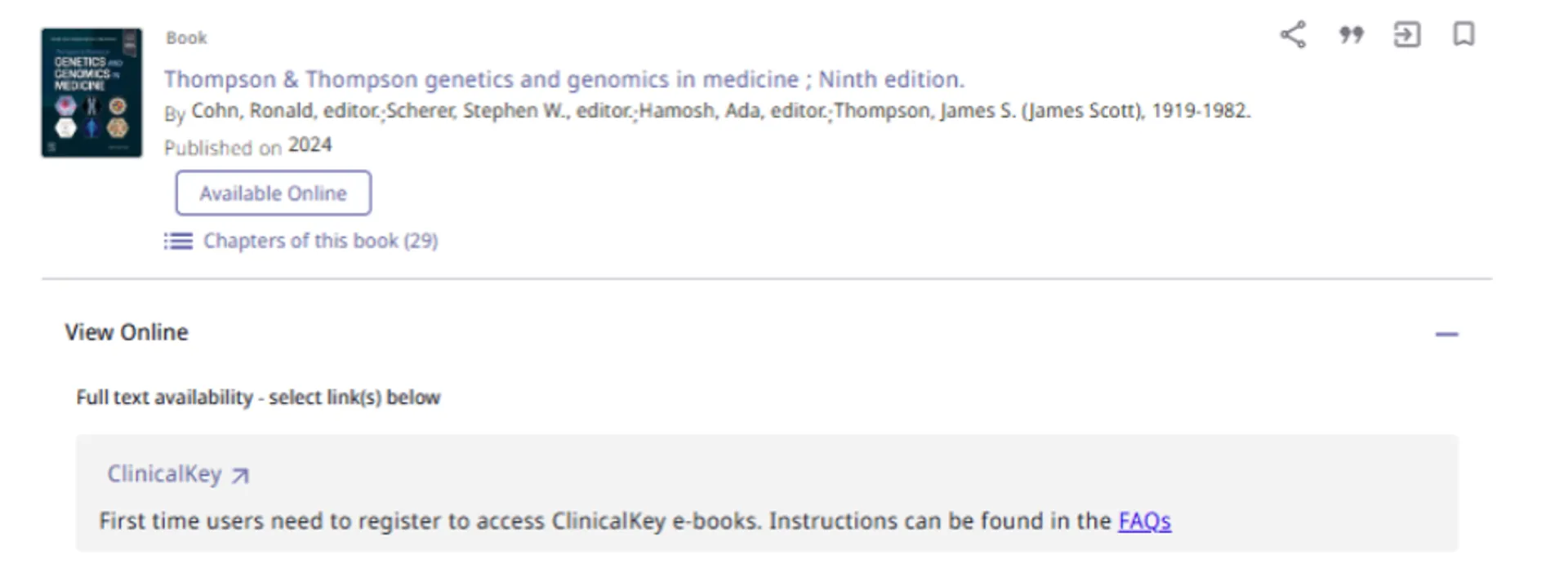 Click on the title of the result to get more information and to see access links. If any additional actions are required to access the resource, this will be explained underneath the access links.