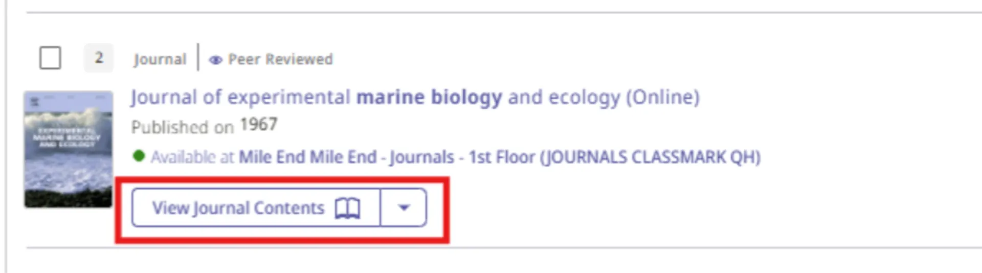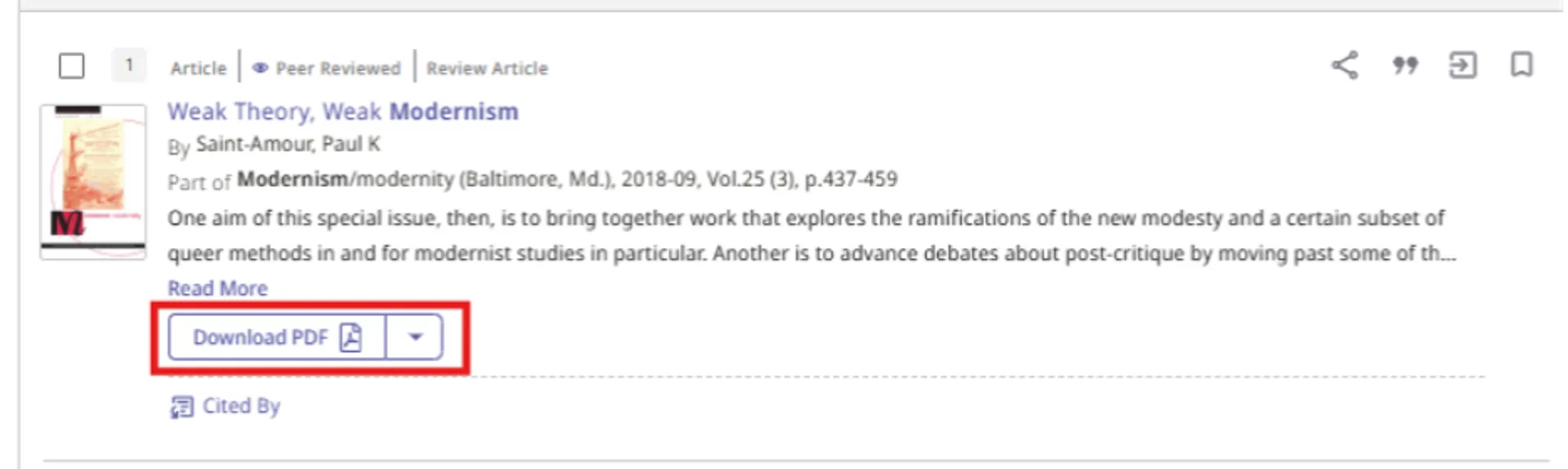 Some resources will show a ‘Download PDF’ or ‘Get PDF’ button in search results, which will result in an instant download of the pdf. Others have the option to View Journal or Issue Contents in BrowZine.