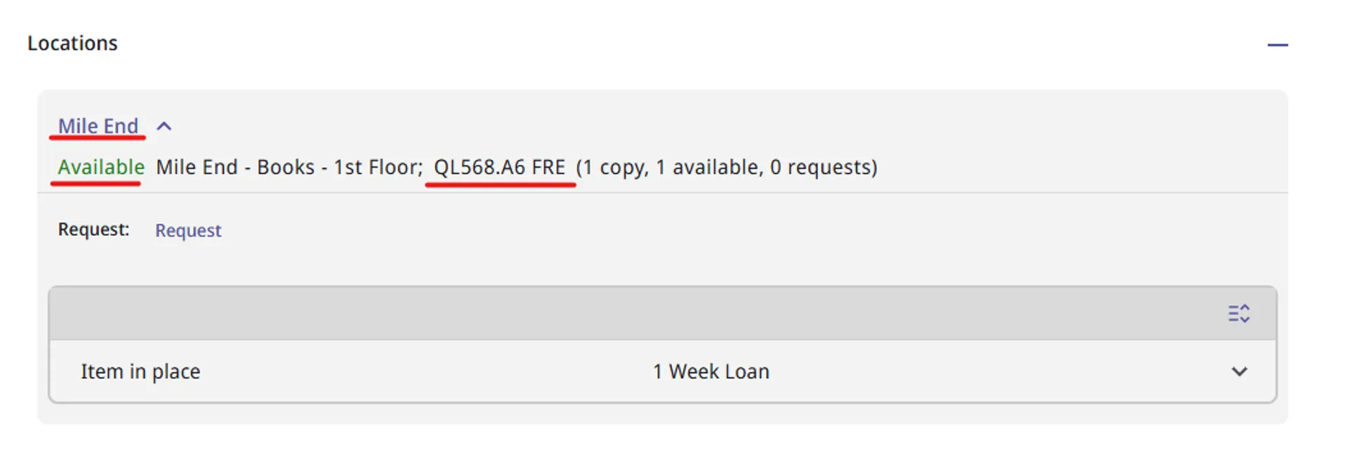 e.g., Mile End – Books – 1st Floor - The shelfmark, which tells you where it sits on the shelves