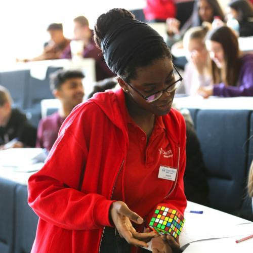 Current student and Maths Ambassador Michelle working with students at a recent Taster Day