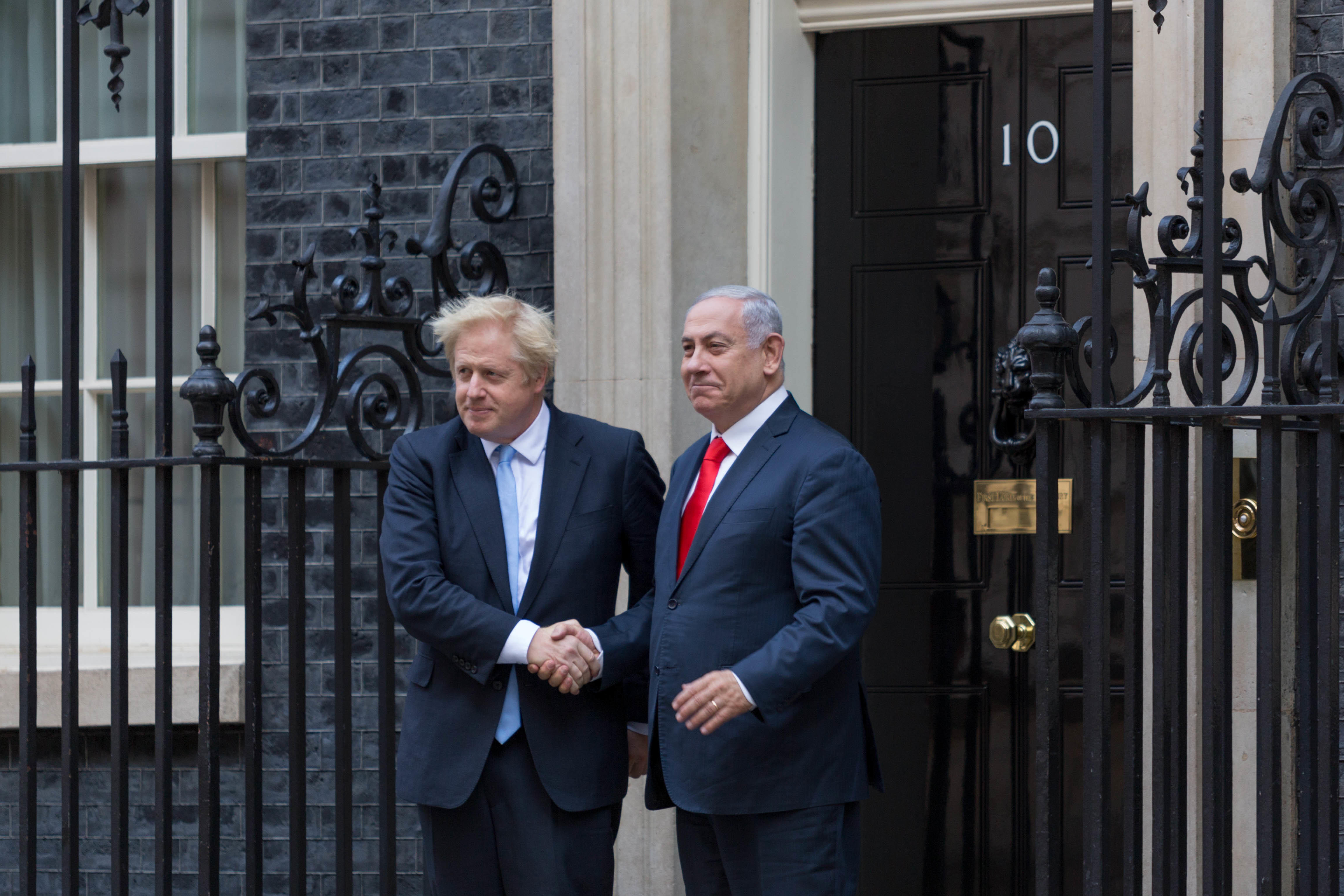 The Israeli prime minister, Benjamin Netanyahu, in Downing Street to meet UK Prime Minister Boris Johnson. September 2019.