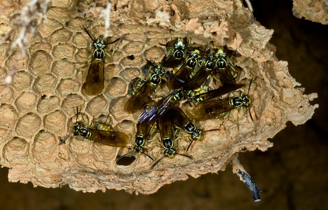 The scientists went to the remote tropical forests of South East Asia to study this tiny wasp species, named Liostenogaster flavolineata. Each nest contains a family of related individuals and hundreds of nests can be clustered together to form a kind of city. Close proximity to so many other families means each colony faces persistent landing attempts by intruders from the neighbourhood, and these might steal resources or theoretically lay cuckoo eggs.