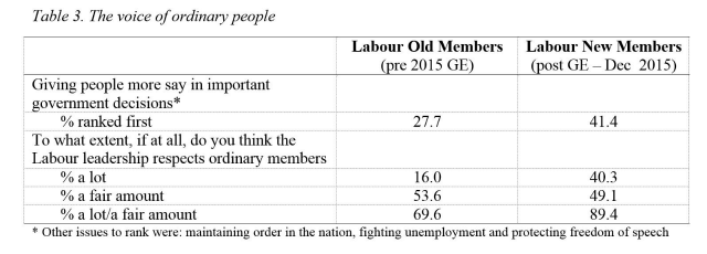 However, Corbyn is also well liked because he is perceived by new members as better understanding the importance of the voice of the people than previous leaders – something they rate as extremely important.