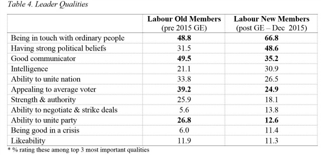 New members also don’t seem fussed about having a leader who is good at communicating. Only 35.2 per cent rated it as the most important quality in a leader, compared with 49.5 per cent of old members. Owen Smith’s strengths in this regard, then, probably did him little good.